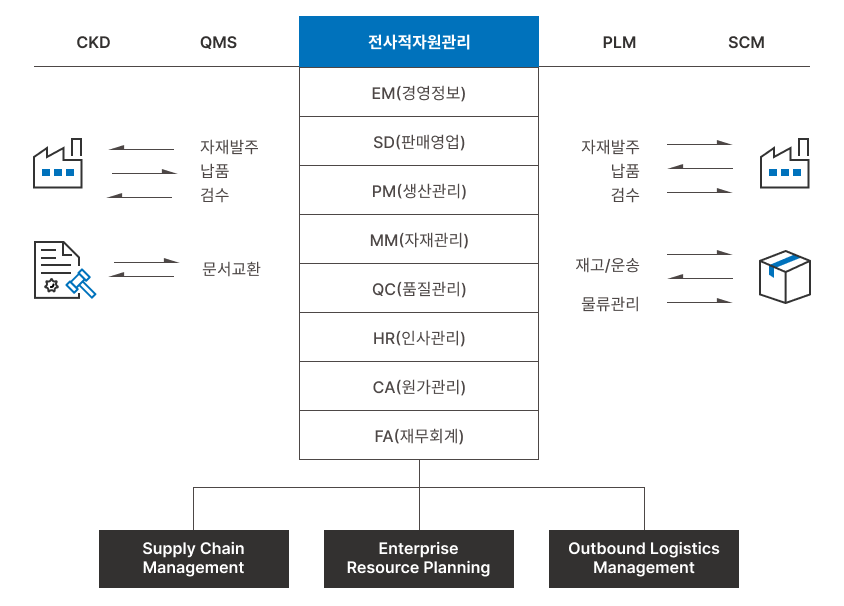 - 기업내의 모든 인적, 물적 자원을 효율적으로 관리하여 기업의 경쟁력을 강화