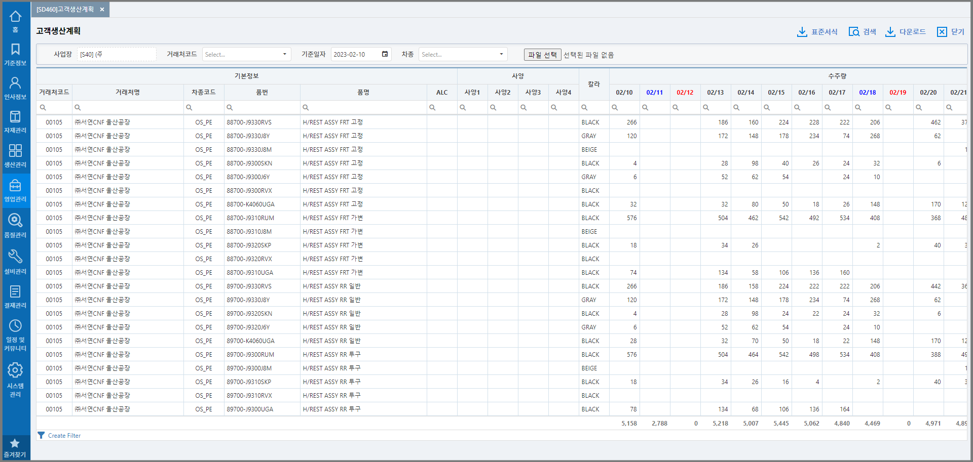 | 재고 | 외주관리 | 출하계획 | 출하검사 | 예비품관리 | 점검관리 |