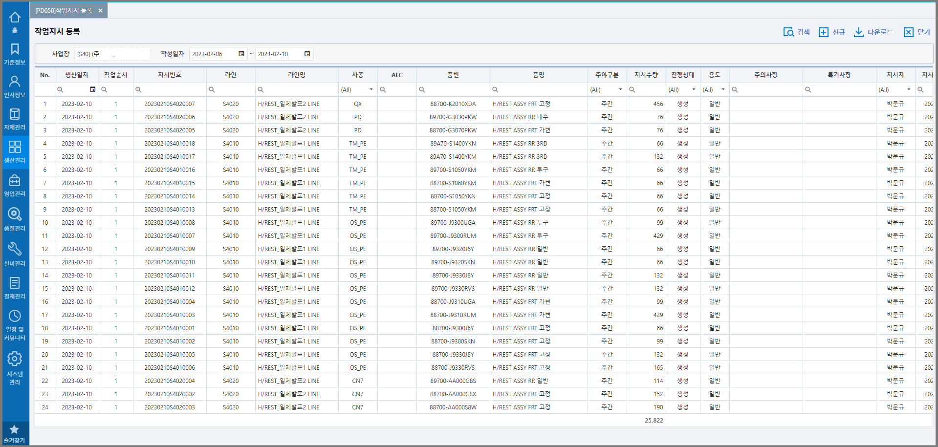| 자재관리 | 공정관리 | 영업관리 | 품질관리 | 설치/치공구 관리 | 금형관리 |